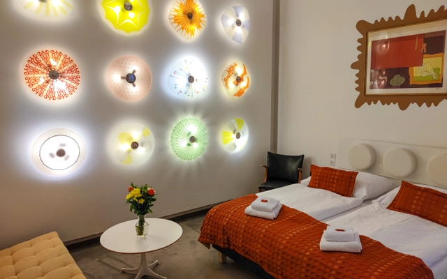 Dvoulůžkové pokoje Standard s manželskými postelemi a výhledem do vnitřního atria hotelu jsou zařízeny originálním designovým nábytkem ve stylu 60. a 70. let. Každý pokoj má vlastní koupelnu, předsíň a klimatizaci, satelitní TV a kapslový kávovar. Některé z pokojů nabízí navíc pohovku. Check-in je možný od 14:00 a check-out je stanoven na 11:00.
